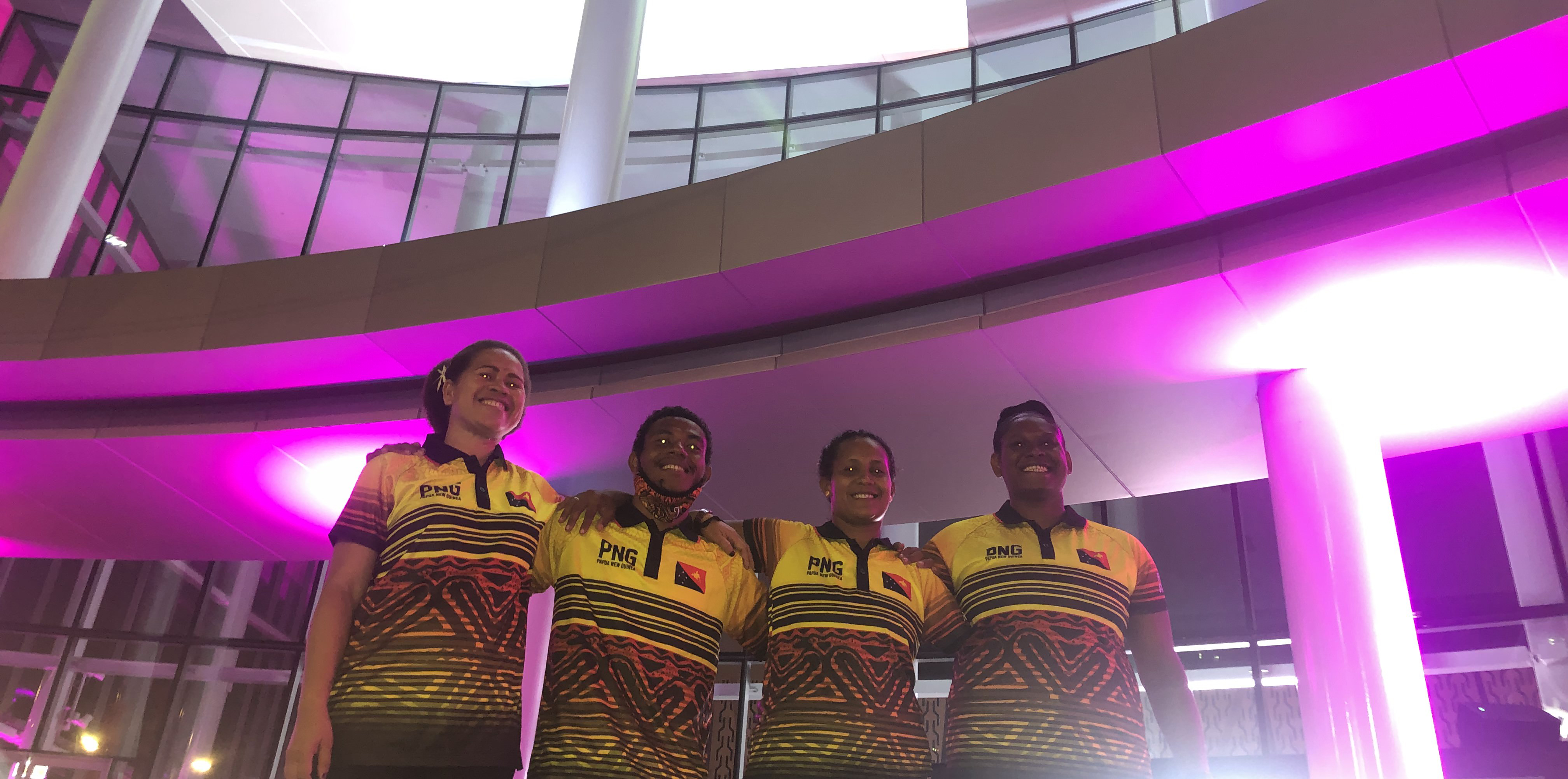 ‘Championing a collaborative approach to disability-inclusive sport’ is one of the core focus areas of Team Up, and the program worked to create opportunities for Pacific nations to take part in the global #WeThe15 campaign. The Port Moresby event included a Q&A with PNG’s Paralympic team, athletes Nelly Ruth Leva (who works on the Team Up Inclusive Gymbad program) and Morea Mararos, as well as a spectacular sound and light show by event production company Next of Kin to celebrate APEC Haus being illuminated in purple.